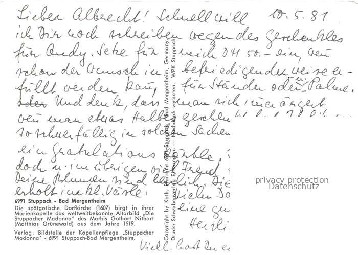 74043992 Stuppach Bad Mergentheim Spaetgotische Domkirche Marienkapelle postalisch nicht gelaufen Erhaltung siehe scans [WerneD78] KatCode: 11110008128007