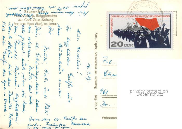 73738937 alte Postkarte Stutenhaus Adlersberg Ferienheim Stutenhaus Berggaststaette der Carl Zeiss Stiftung postalisch gelaufen Erhaltung siehe scans [WerneD78] KatCode: 11110016070046