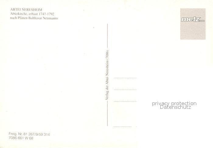 73174967 Stuttgart Abtei Neresheim Fliegeraufnahme postalisch nicht gelaufen Erhaltung siehe scans [NatalD47] KatCode: 11110008111000