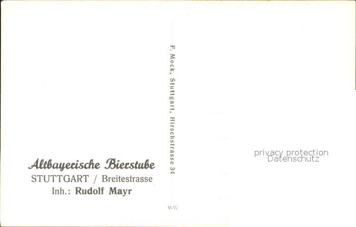 31708365 Stuttgart Altbayrische Bierstube Breitestrasse Rudolf Mayr postalisch nicht gelaufen Erhaltung siehe scans KatCode: 11110008111000
