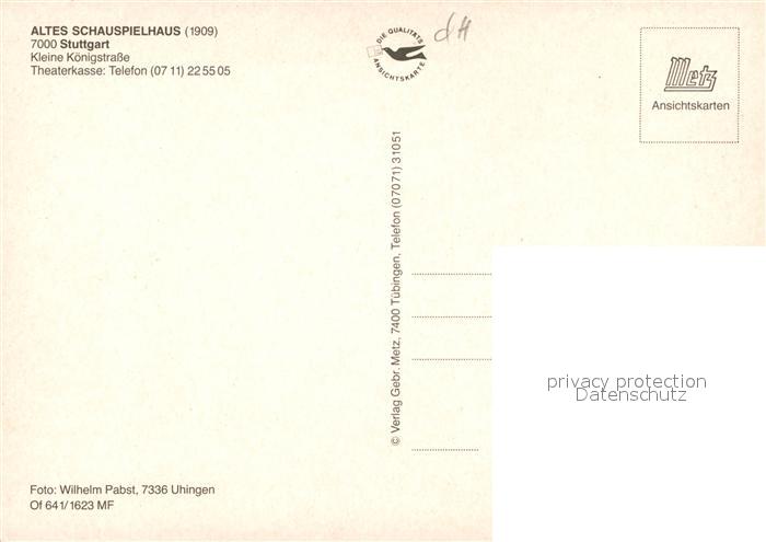73160760 Stuttgart Altes Schauspielhaus postalisch nicht gelaufen Erhaltung siehe scans [KathaD81] KatCode: 11110008111000