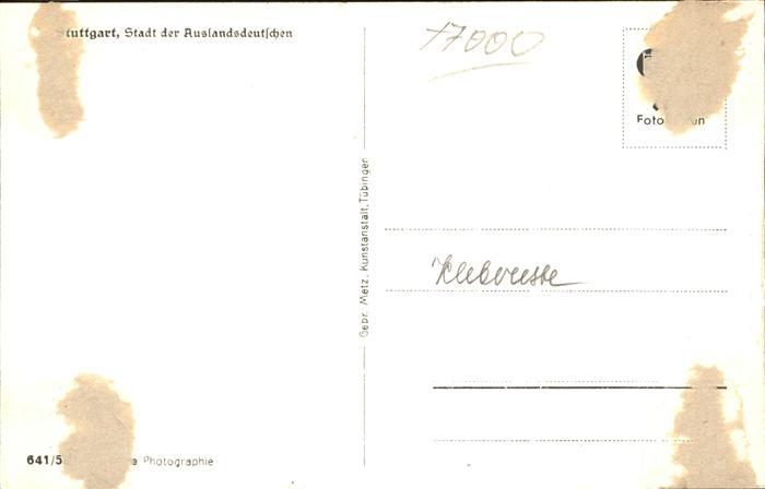 41344147 STUTTGART CITY postalisch nicht gelaufen Erhaltung mit Maengel Alte Ansichtskarte Postkarte hz_L Katcode 11110008111000