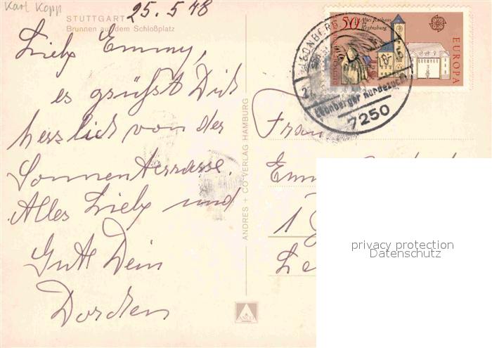 72864795 alte Postkarte STUTTGART CITY Brunnen auf dem Schlossplatz postalisch gelaufen Erhaltung siehe scans [LiesaD40] KatCode: 11110008111000