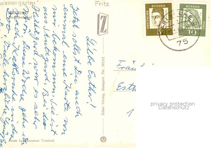 72864806 alte Postkarte STUTTGART CITY Brunnen vor dem Hauptbahnhof postalisch gelaufen Erhaltung siehe scans [LiesaD40] KatCode: 11110008111000