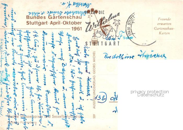73771056 STUTTGART CITY BUGA 1961 Fontaene postalisch gelaufen Erhaltung siehe scans [WerneD78] alte Postkarte Wern Katcode 11110008111000
