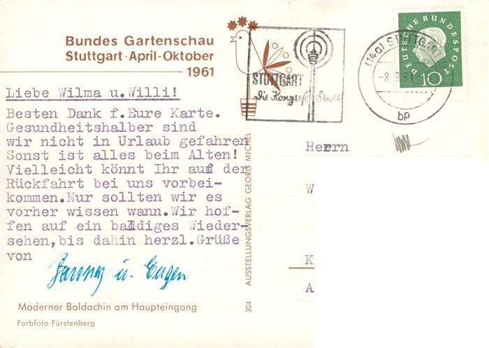 73924586 STUTTGART CITY BUGA Stuttgart 1961 postalisch gelaufen Erhaltung siehe scans [WerneD78] alte Postkarte Wern Katcode 11110008111000