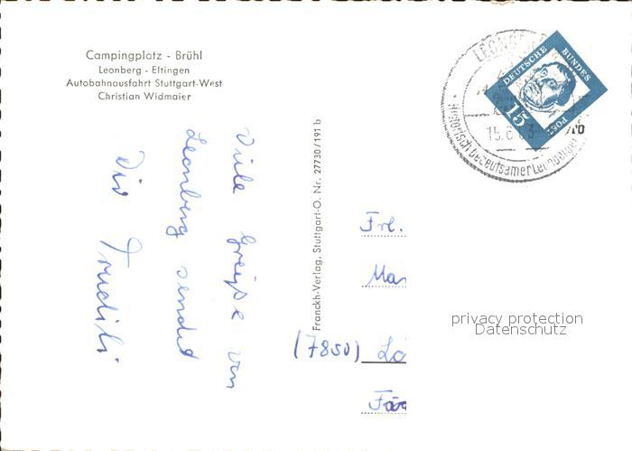 72364747 alte Postkarte STUTTGART CITY Campingplatz Bruehl Leonberg Eltlingen postalisch gelaufen Erhaltung siehe scans KatCode: 11110008111000