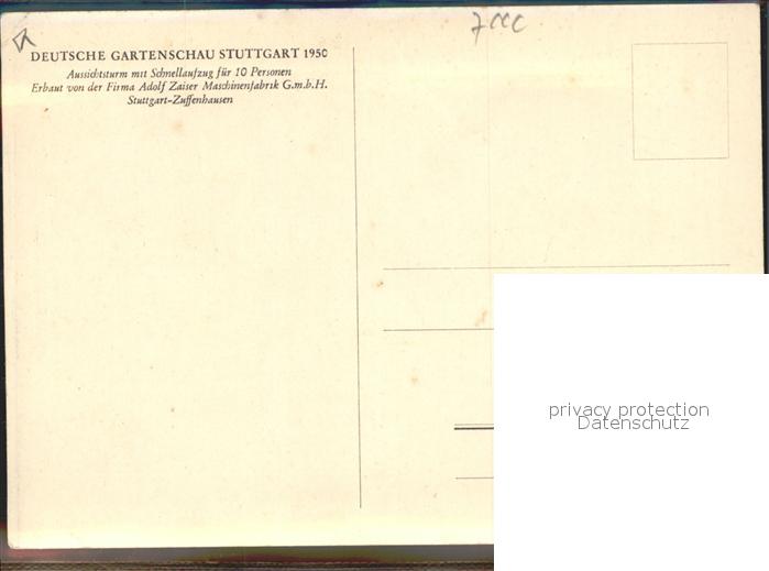 41574252 STUTTGART CITY Deutsche Gartenschau Kuenstlerkarte Aussichtsturm postalisch nicht gelaufen Erhaltung siehe scans Alte Ansichtskarte Postkarte hz_L Katcode 11110008111000