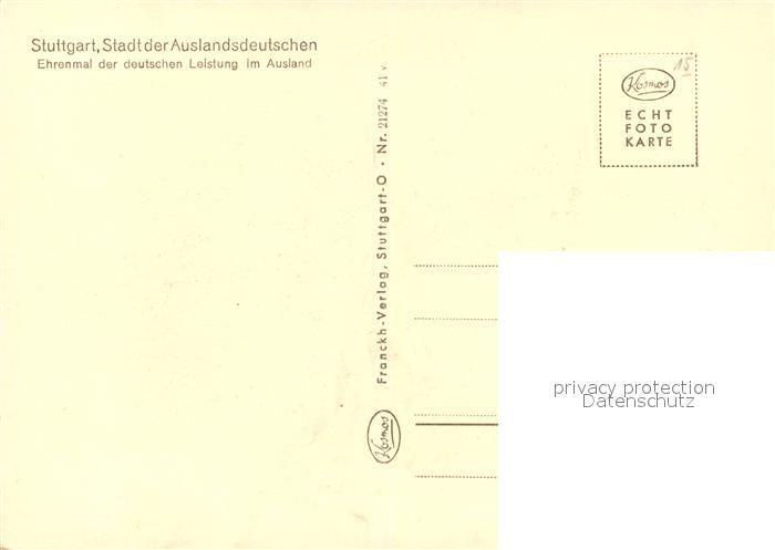 73098616 STUTTGART CITY Ehrenmal der deutschen Leistung im Ausland postalisch nicht gelaufen Erhaltung siehe scans [KathaD81] KatCode: 11110008111000