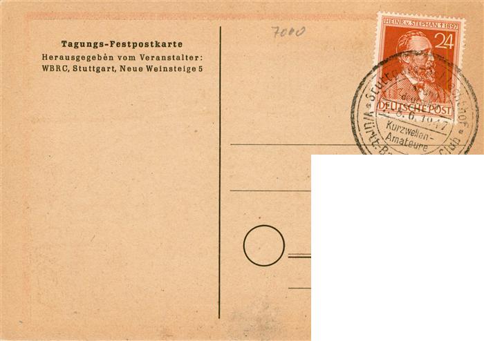 73869788 STUTTGART CITY Erste Tagung der Deutschen Kurzwellenamateure nach dem Krieg Kuenstlerkarte postalisch gelaufen Erhaltung siehe scans [FriedD77] alte Postkarte Frie Katcode 11110008111000