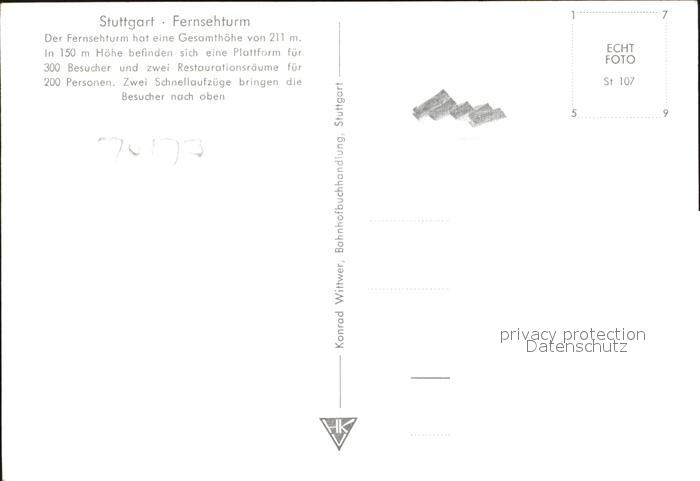 72403463 STUTTGART CITY Fernsehturm postalisch nicht gelaufen Erhaltung siehe scans KatCode: 11110008111000