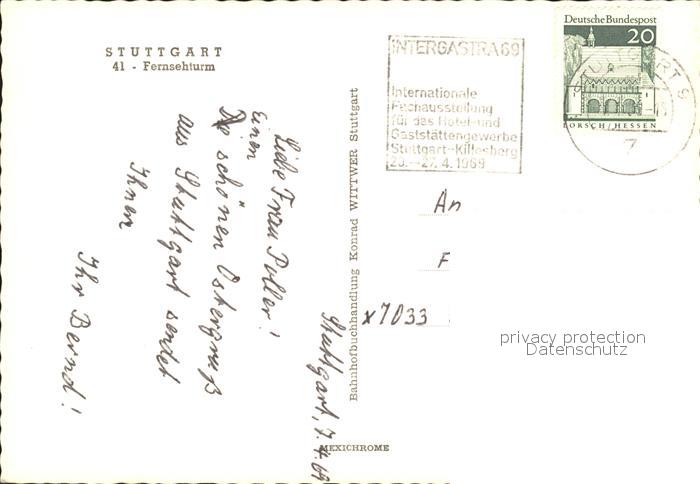 71860082 alte Postkarte STUTTGART CITY Fernsehturm postalisch gelaufen Erhaltung siehe scans KatCode: 11110008111000
