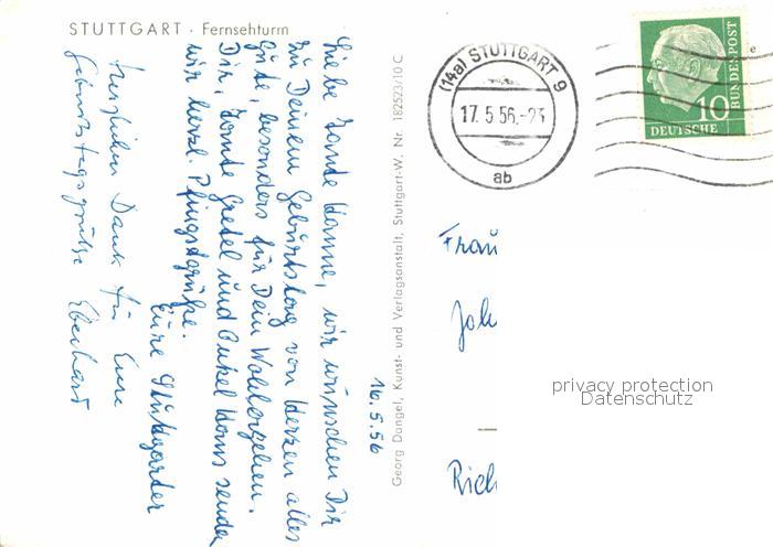 72829058 alte Postkarte STUTTGART CITY Fernsehturm postalisch gelaufen Erhaltung siehe scans [LiesaD40] KatCode: 11110008111000