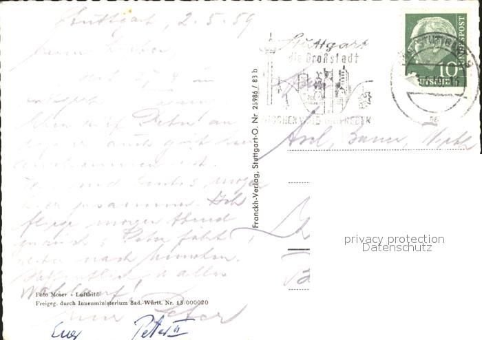 72091961 alte Postkarte STUTTGART CITY Fernsehturm Fliegeraufnahme postalisch gelaufen Erhaltung siehe scans KatCode: 11110008111000