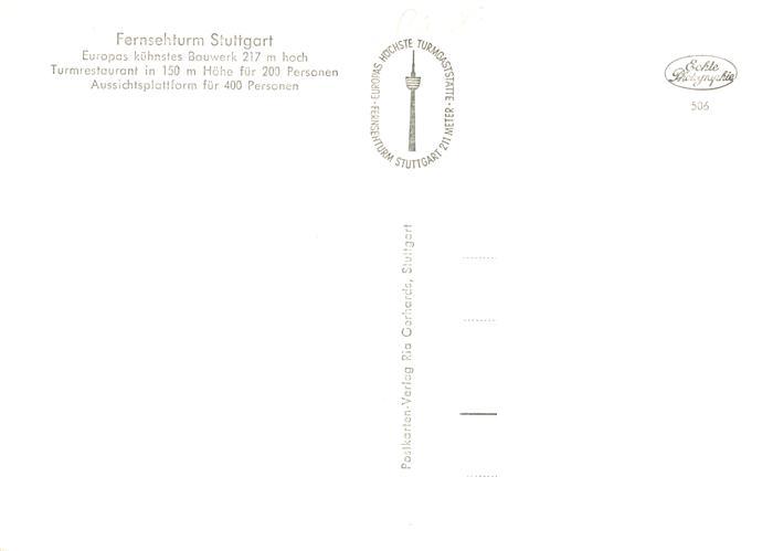 73891856 STUTTGART CITY Fernsehturm Turmrestaurant postalisch nicht gelaufen Erhaltung siehe scans [WerneD78] Wern Katcode 11110008111000