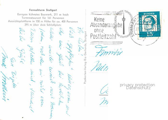 72762935 alte Postkarte STUTTGART CITY Fersehturm postalisch gelaufen Erhaltung siehe scans [AndreD76] KatCode: 11110008111000