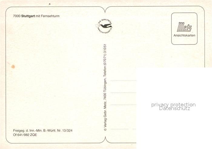 72946752 STUTTGART CITY Fliegeraufnahme Fernsehturm postalisch nicht gelaufen Erhaltung siehe scans [KathaD81] KatCode: 11110008111000