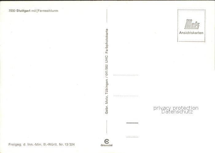 72375046 STUTTGART CITY Fliegeraufnahme Fernsehturm postalisch nicht gelaufen Erhaltung siehe scans KatCode: 11110008111000