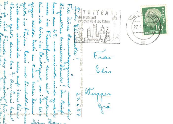 73903591 STUTTGART CITY Fliegeraufnahme mit Fernsehturm postalisch gelaufen Erhaltung siehe scans [FriedD77] alte Postkarte Frie Katcode 11110008111000