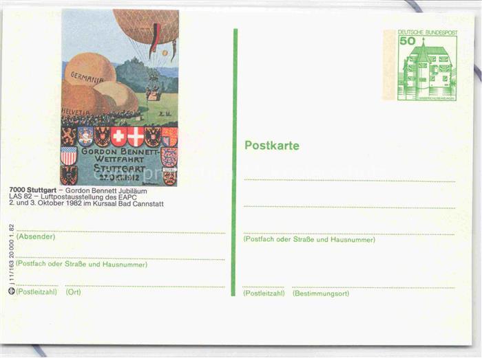 74122869 STUTTGART CITY Gordon Bennett Jubilaeum LAS 82 Luftpostausstellung des EAPC Kuenstlerkarte postalisch nicht gelaufen Ganzsache (eingedruckte Briefmarke) Erhaltung siehe scans [FriedD77] KatCode: 11110008111000