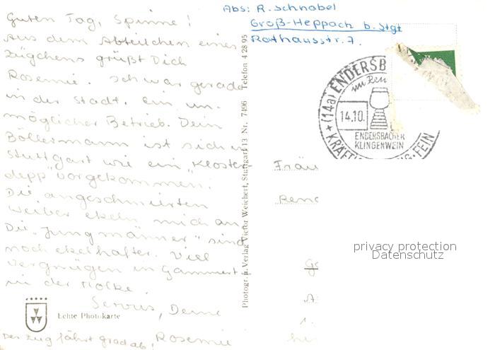 72982725 alte Postkarte STUTTGART CITY Hindenburgbau Zeppelinbau Schillerplatz Denkmal Geroksruhe Hauptbahnhof Konzerthalle Liederhalle Schlossplatz Wappen postalisch gelaufen Erhaltung siehe scans [FriedD77] KatCode: 11110008111000