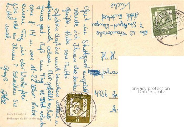 72723054 alte Postkarte STUTTGART CITY Hoehenpark Killesberg Wasserspiele Fontaene postalisch gelaufen Erhaltung siehe scans [FriedD77] KatCode: 11110008111000