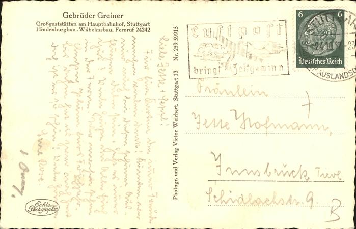 41335071 STUTTGART CITY Hofen Max Eyth See postalisch gelaufen gute Erhaltung Alte Ansichtskarte Postkarte alte Postkarte hz_L Katcode 11110008111000