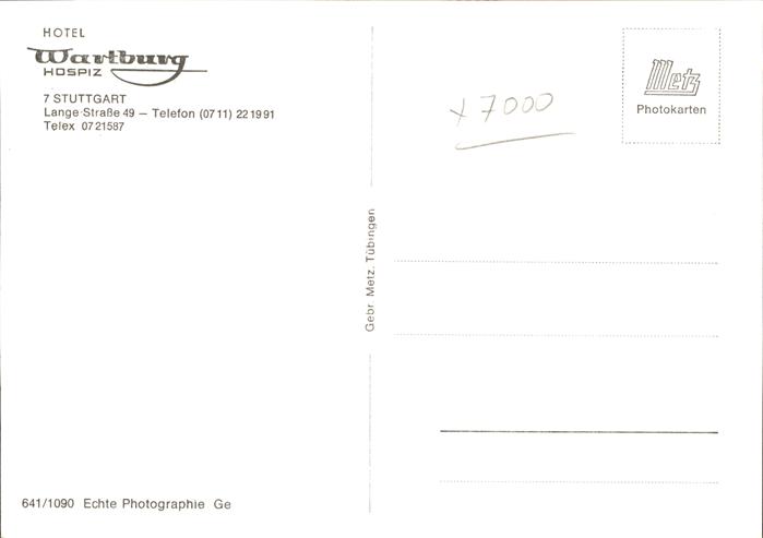 41347655 STUTTGART CITY Hotel Wartburg Hospiz postalisch nicht gelaufen gute Erhaltung Alte Ansichtskarte Postkarte hz_W Katcode 11110008111000