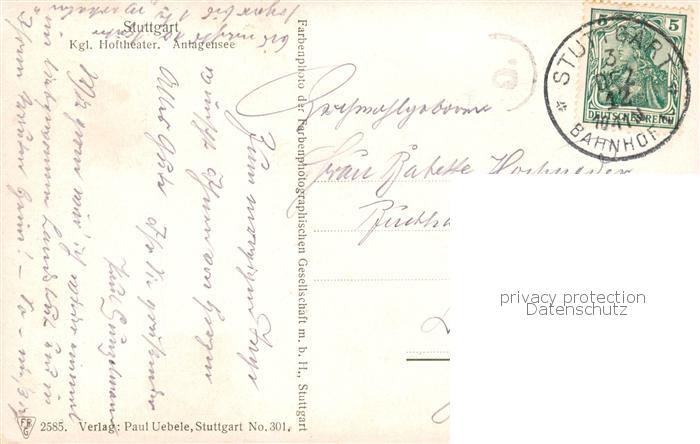 73804063 STUTTGART CITY Kgl Hoftheater Anlagensee Fontaene postalisch gelaufen Erhaltung siehe scans [WerneD78] alte Postkarte Wern Katcode 11110008111000
