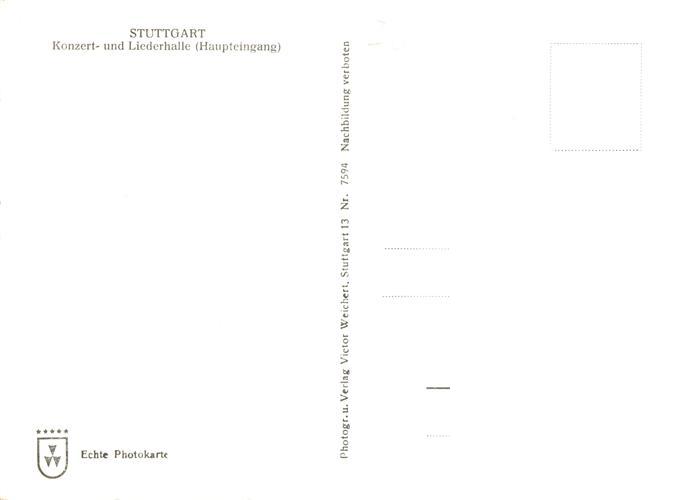 73889263 STUTTGART CITY Konzert und Liederhalle Haupteingang postalisch nicht gelaufen Erhaltung siehe scans [WerneD78] Wern Katcode 11110008111000