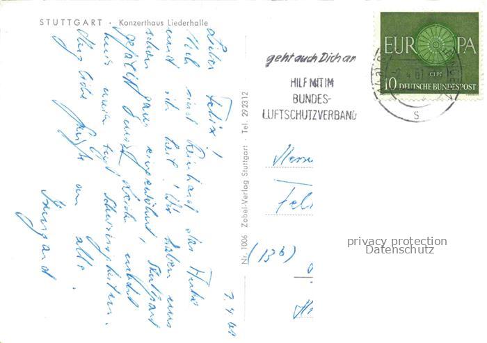 74131131 alte Postkarte STUTTGART CITY Konzerthaus Liederhalle postalisch gelaufen Erhaltung siehe scans [FriedD77] KatCode: 11110008111000