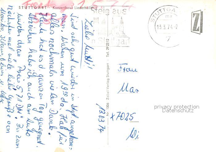 72987352 alte Postkarte STUTTGART CITY Konzerthaus Liederhalle postalisch gelaufen Erhaltung siehe scans [WerneD78] KatCode: 11110008111000