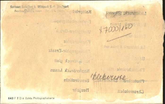 41347577 STUTTGART CITY Kurhaus Schatten bei Wildpark postalisch nicht gelaufen Erhaltung mit Maengel Alte Ansichtskarte Postkarte hz_W Katcode 11110008111000