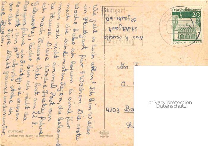 72860845 alte Postkarte STUTTGART CITY Landtag von Baden Wuerttemberg postalisch gelaufen Erhaltung siehe scans [LiesaD40] KatCode: 11110008111000