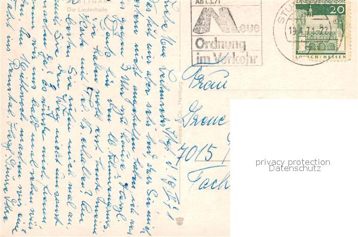 72984545 alte Postkarte STUTTGART CITY Liederhalle postalisch gelaufen Erhaltung siehe scans [LiesaD40] KatCode: 11110008111000