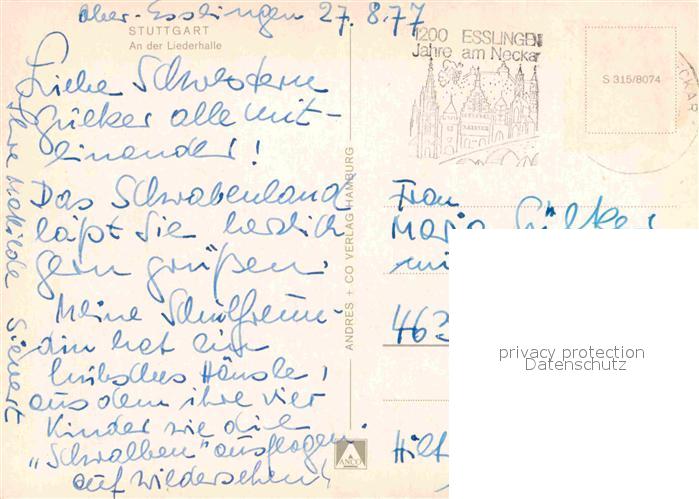 72896826 alte Postkarte STUTTGART CITY Liederhalle postalisch gelaufen Erhaltung siehe scans [KathaD81] KatCode: 11110008111000