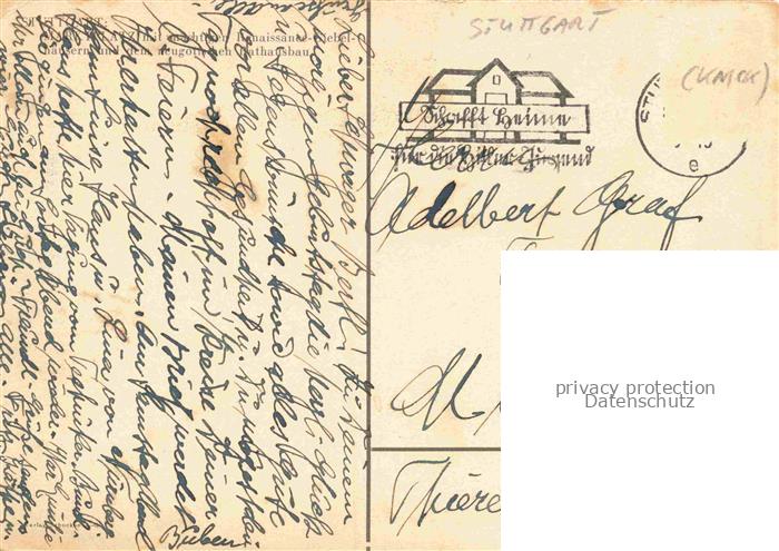 74153478 alte Postkarte STUTTGART CITY Marktplatz Renaissance-Giebelhaeuser neugotischer Rathausbau postalisch gelaufen Erhaltung siehe scans [FriedD77] KatCode: 11110008111000