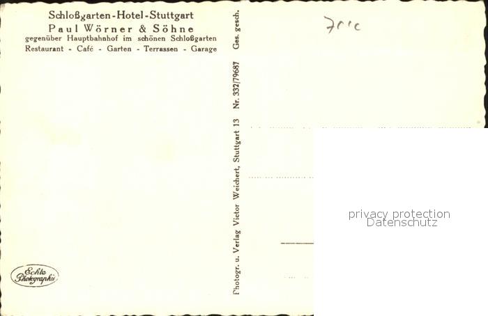 41573744 STUTTGART CITY Marktplatz Schlossgarten-Hotel-Stuttgart Paul Woerner postalisch nicht gelaufen Erhaltung siehe scans Alte Ansichtskarte Postkarte hz_L Katcode 11110008111000