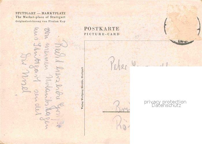 72831640 alte Postkarte STUTTGART CITY Marktplatz Zeichnung Florian Kay postalisch gelaufen Erhaltung siehe scans [KathaD81] KatCode: 11110008111000