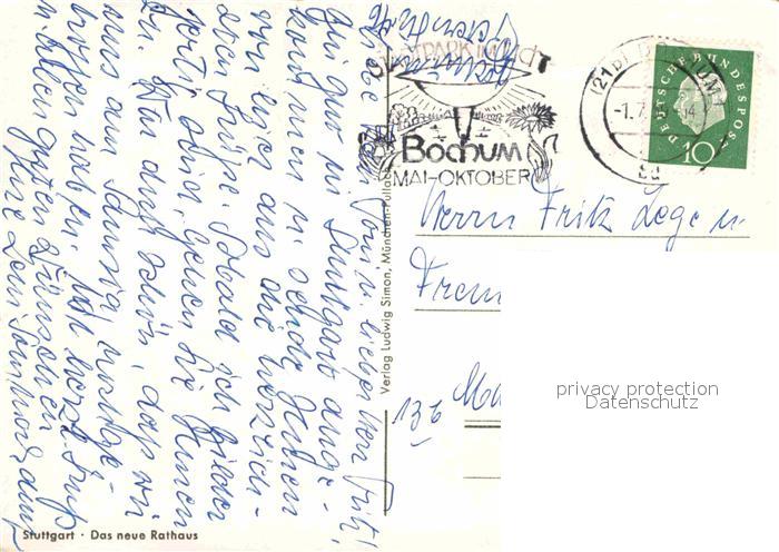 72831489 alte Postkarte STUTTGART CITY Neues Rathaus postalisch gelaufen Erhaltung siehe scans [LiesaD40] KatCode: 11110008111000