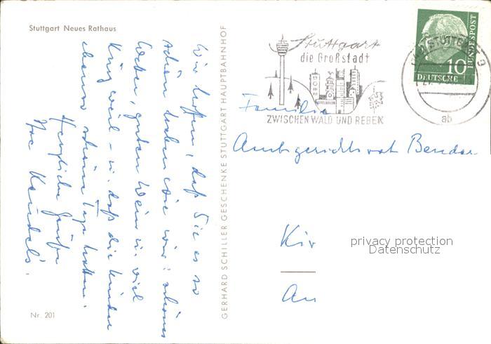 71952571 alte Postkarte STUTTGART CITY Neues Rathaus postalisch gelaufen Erhaltung siehe scans KatCode: 11110008111000