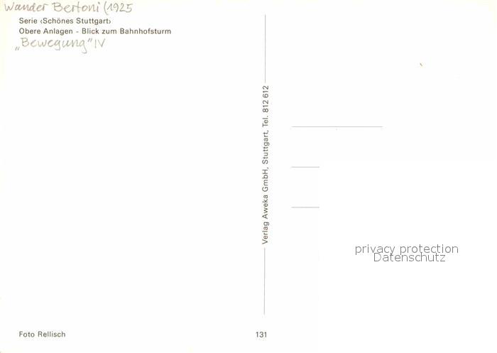 72860017 STUTTGART CITY Obere Anlage Bahnhofsturm postalisch nicht gelaufen Erhaltung siehe scans [LiesaD40] KatCode: 11110008111000