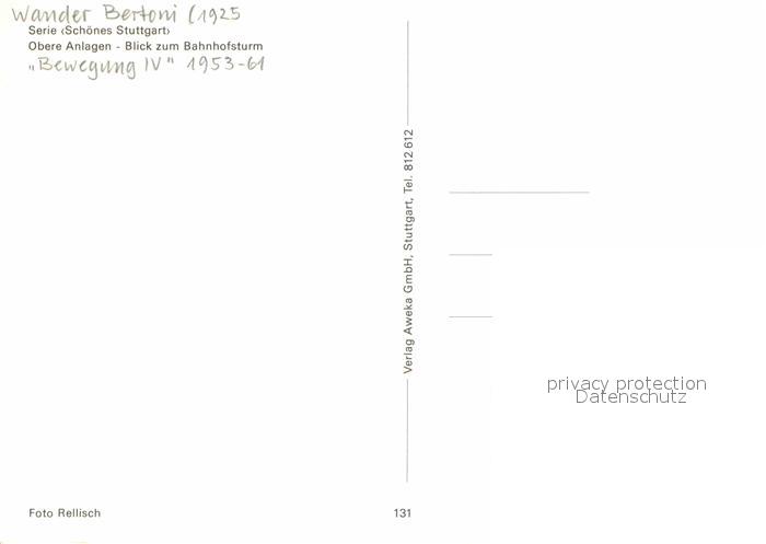 72860020 STUTTGART CITY Obere Anlage mit Bahnhofsturm postalisch nicht gelaufen Erhaltung siehe scans [LiesaD40] KatCode: 11110008111000