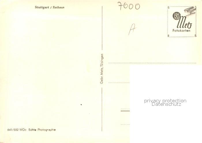 72920297 STUTTGART CITY Rathaus postalisch nicht gelaufen Erhaltung siehe scans [LiesaD40] KatCode: 11110008111000