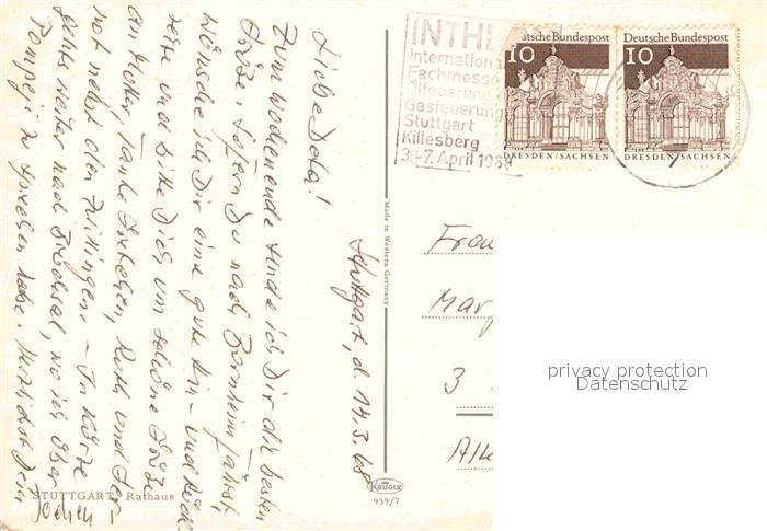 72712948 alte Postkarte STUTTGART CITY Rathaus postalisch gelaufen Erhaltung siehe scans [LiesaD40] KatCode: 11110008111000