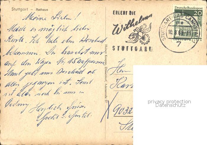 72447821 alte Postkarte STUTTGART CITY Rathaus postalisch gelaufen Erhaltung siehe scans KatCode: 11110008111000