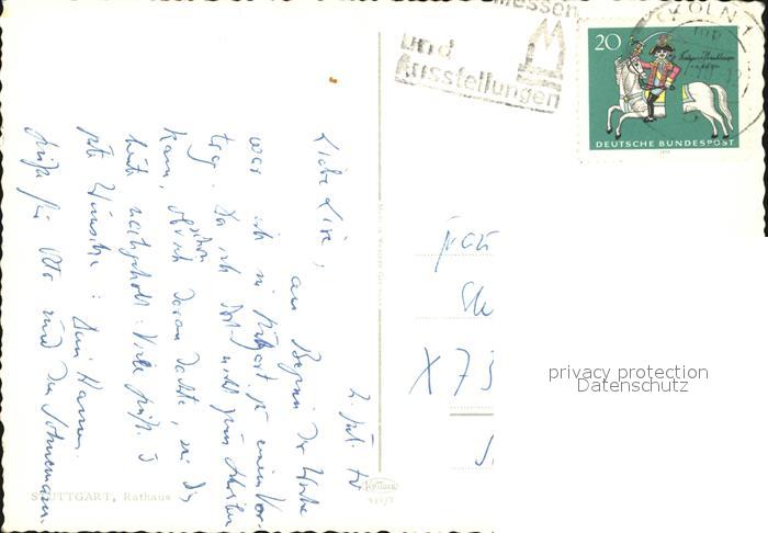 72415427 alte Postkarte STUTTGART CITY Rathaus postalisch gelaufen Erhaltung siehe scans KatCode: 11110008111000