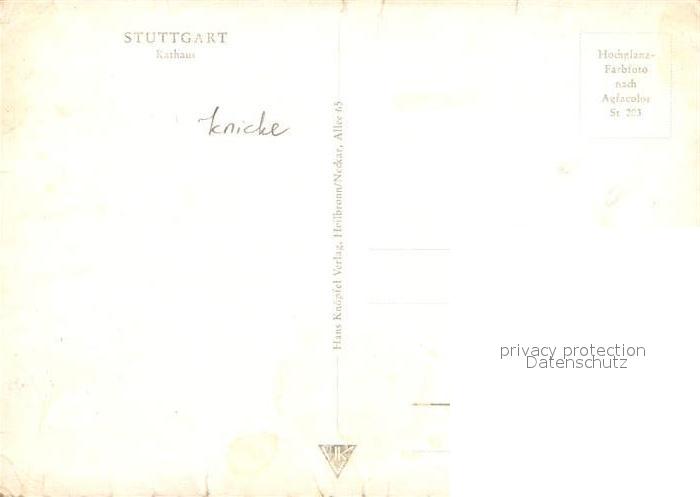 72981553 STUTTGART CITY Rathaus postalisch nicht gelaufen Erhaltung siehe scans [LiesaD40] KatCode: 11110008111000