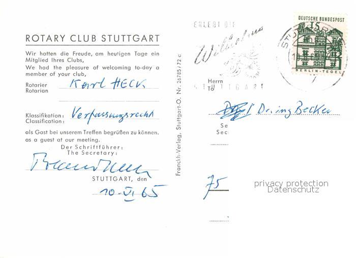 72831493 alte Postkarte STUTTGART CITY Rotary Club postalisch gelaufen Erhaltung siehe scans [LiesaD40] KatCode: 11110008111000