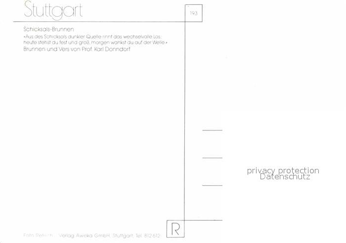 72860015 STUTTGART CITY Schicksalsbrunnen postalisch nicht gelaufen Erhaltung siehe scans [LiesaD40] KatCode: 11110008111000